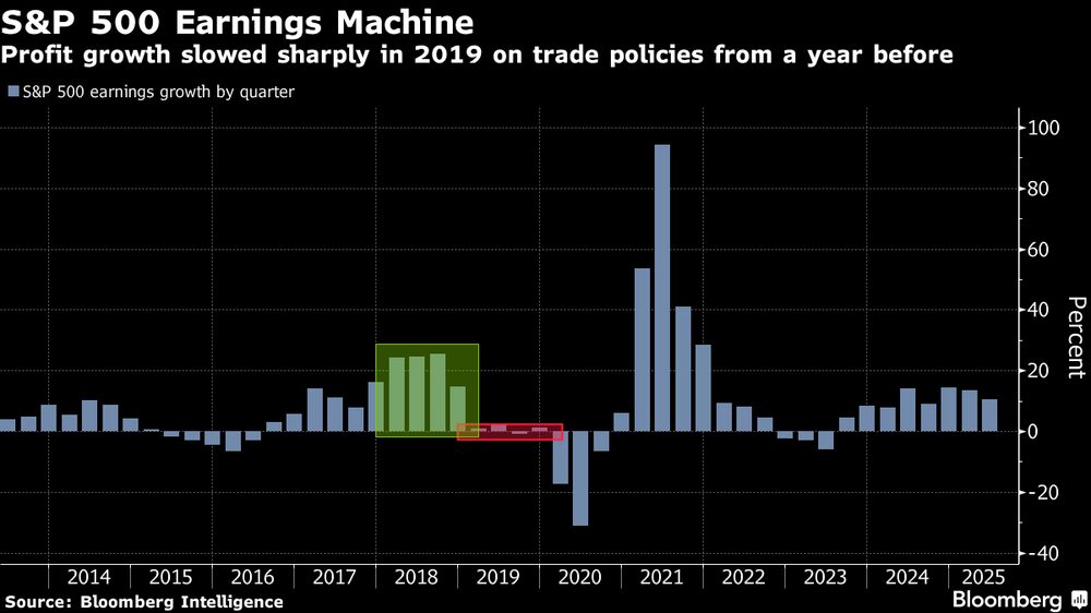 Semejante escenario se produjo durante el primer mandato de Trump: aunque la guerra comercial de EE.UU. con China se calentó a principios de 2018, el golpe a los beneficios corporativos solo se mostró alrededor de un año más tarde. Y Giacoumakis señaló que la economía tuvo el viento de cola de los grandes recortes del impuesto de sociedades durante ese periodo.