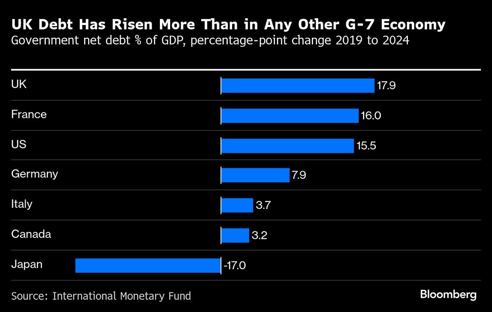 Ningún país avanzado, salvo España, experimentó un aumento más acusado de la carga de la deuda entre 2019 y 2022 que el Reino Unido. Para 2024, Gran Bretaña estaba en cabeza, con el mayor aumento de la deuda neta respecto al PIB de las 33 naciones avanzadas evaluadas por el Fondo Monetario Internacional. No era inevitable. Dinamarca, Portugal y los Países Bajos redujeron su deuda.